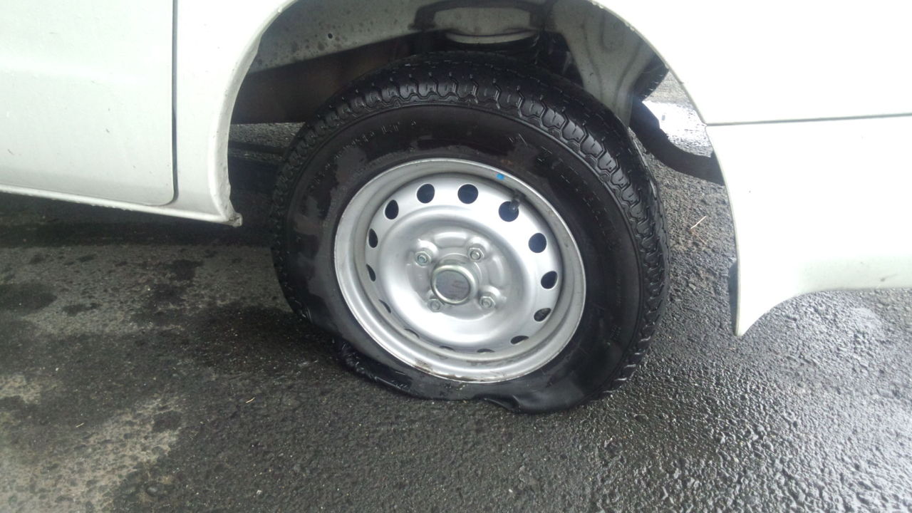 たまたま部下の車を借りており、何かを踏んでパンクしたらしい。