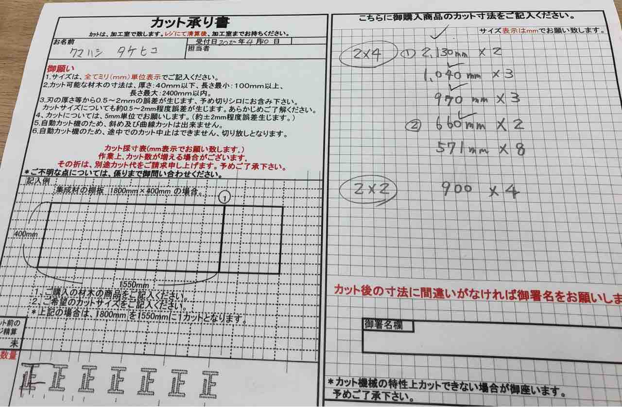 初めての2×4加工でしたが