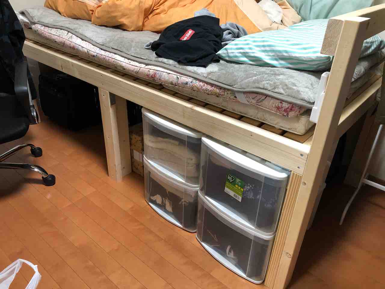 収納も兼ねて「高床ベッド」を
