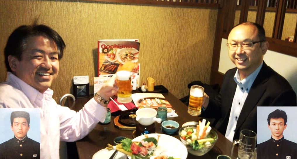左が村上研一君で、右が高校時代の親友中島慶太君です。